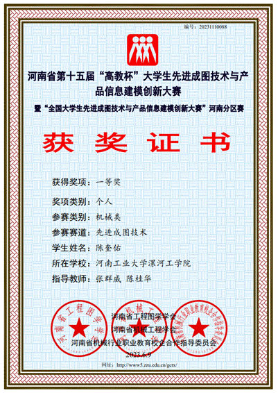 今年河南省省赛参赛人数多达1600余人,59支队伍,其中机械类1001人,参赛人数创历史新高。yl6809永利通过校赛多次选拔、集中培训,最终选定王静涛、陈奎佑等11名同学代表公司参赛。在团队老师的悉心指导和同学们的不懈努力下,最终获得成图赛道一等奖3项、二等奖2项、三等奖2项、轻量化设计赛道一等奖的优异成绩。
