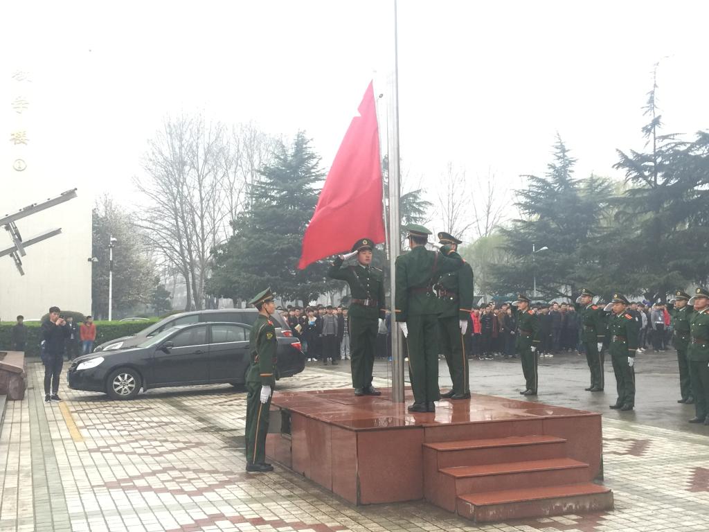 2018年3月19日清晨,在院行政楼前举行了yl6809永利升国旗活动,员工处耿处长及yl6809永利全体师生冒着小雨准时参加。