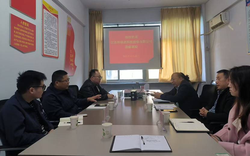 10月30日,江苏科瑞恩科技股份有限公司人事行政中心总监孟祥波一行莅临公司洽谈校企合作事宜。公司党总支书记翟迎朝、经理陈迎松及相关班子成员参加会议。