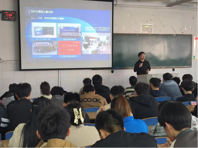 3月29日下午,杭州海康威视股份有限公司人力资源部招聘经理解凯彬、姜方晨一行到yl6809永利yl6809永利举行“智能制造星火订单班”宣讲会,yl6809永利2021级相关专业200多人参加。