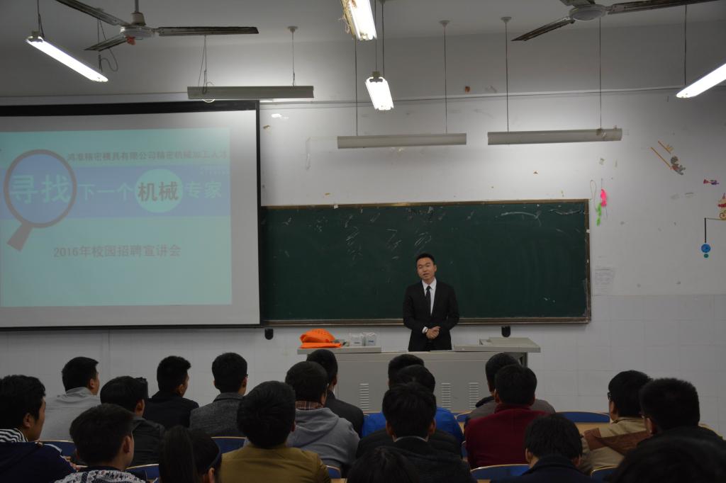 2016年3月23日下午,yl6809永利在3201教室成功举办了山西晋城富士康鸿准模具订单班招聘会,招聘活动由深圳富士康总部人力资源部经理周一主持,yl6809永利100多名二年级员工参加了招聘活动。