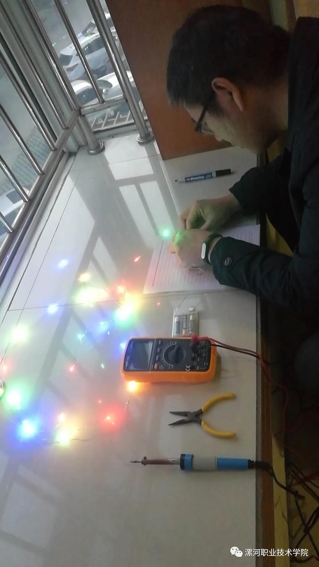 谷广超老师,主讲本科专业《电工技术》课程。面对电工技术课程比较枯燥,不容易理解的特点,他先利用MULTISIM电路仿真软件进行电路仿真演示,进行电路工作原理的介绍,然后再利用家里的旧电池、发光二极管等电子元器件现场连接实际电路直播给员工看,极大地提高了员工学习的积极性。