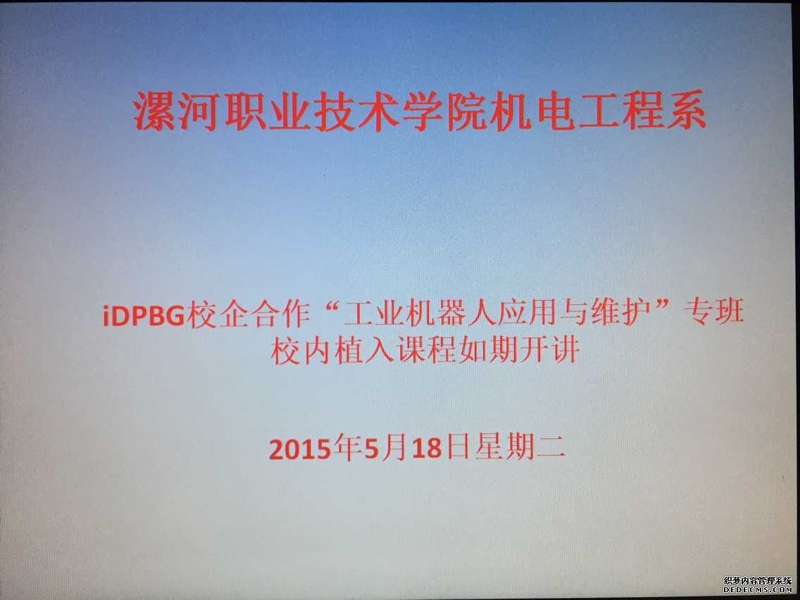 为深化校企合作,yl6809永利和郑州富士康集团经过近一年的协商,于2015年3月27日举行签字授牌仪式,正式成立了郑州富士康集团漯河职院iDPBG校企专班。